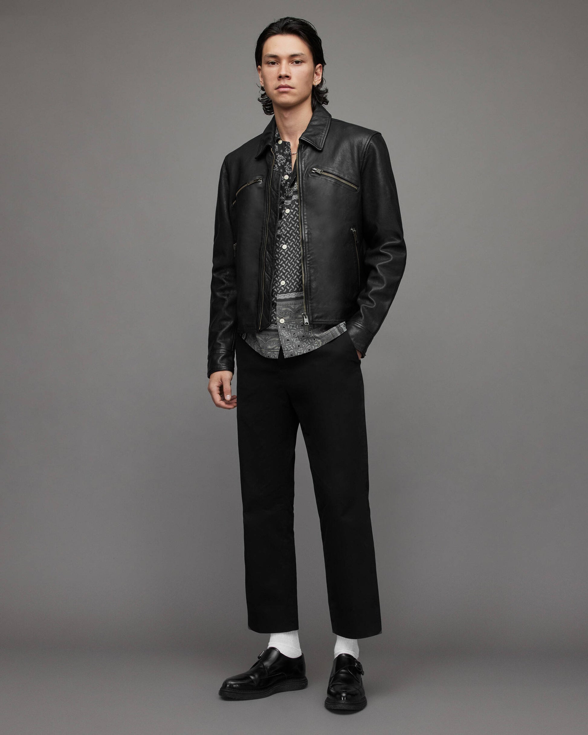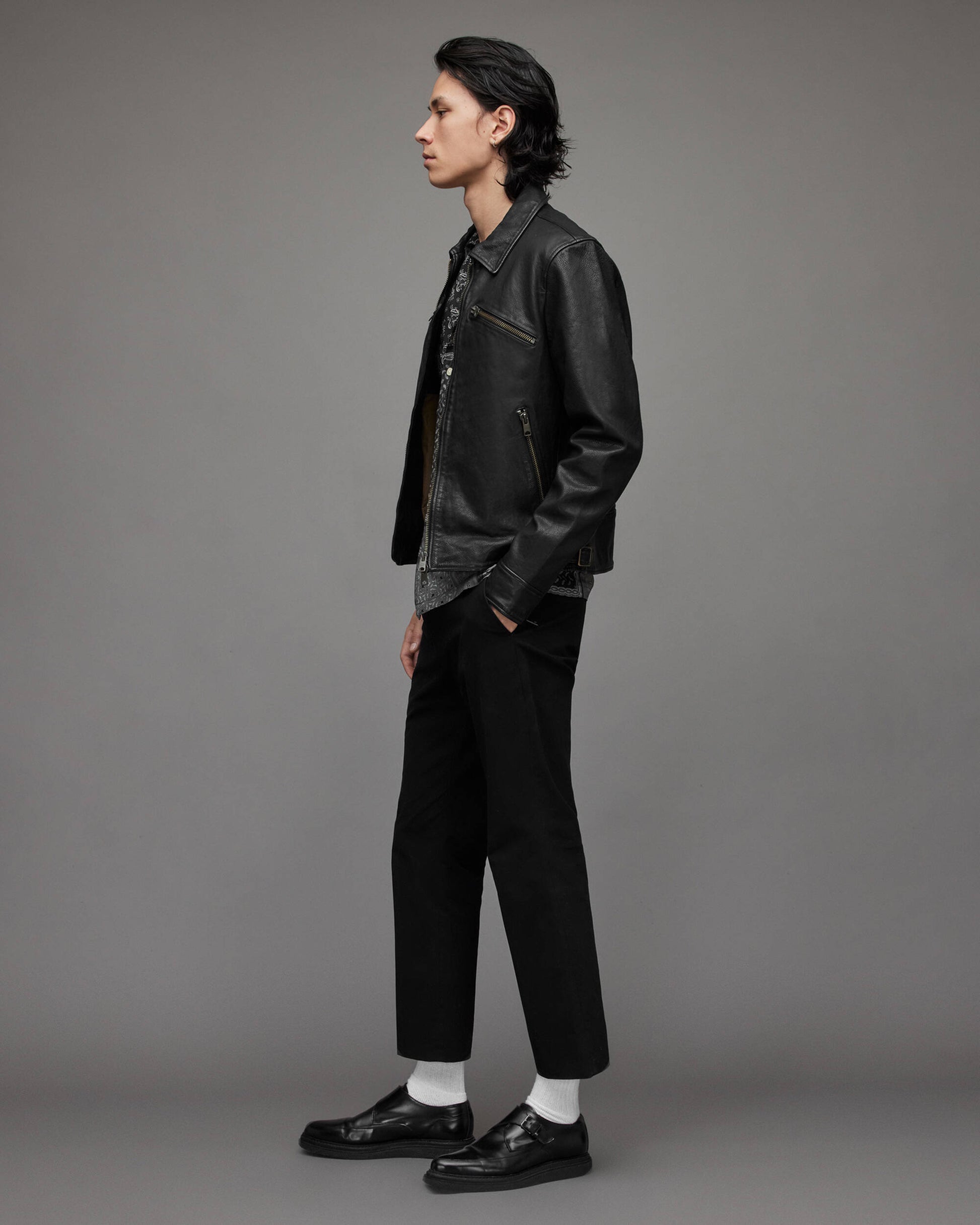 Men's Black Cafe Racer Leather Jacket