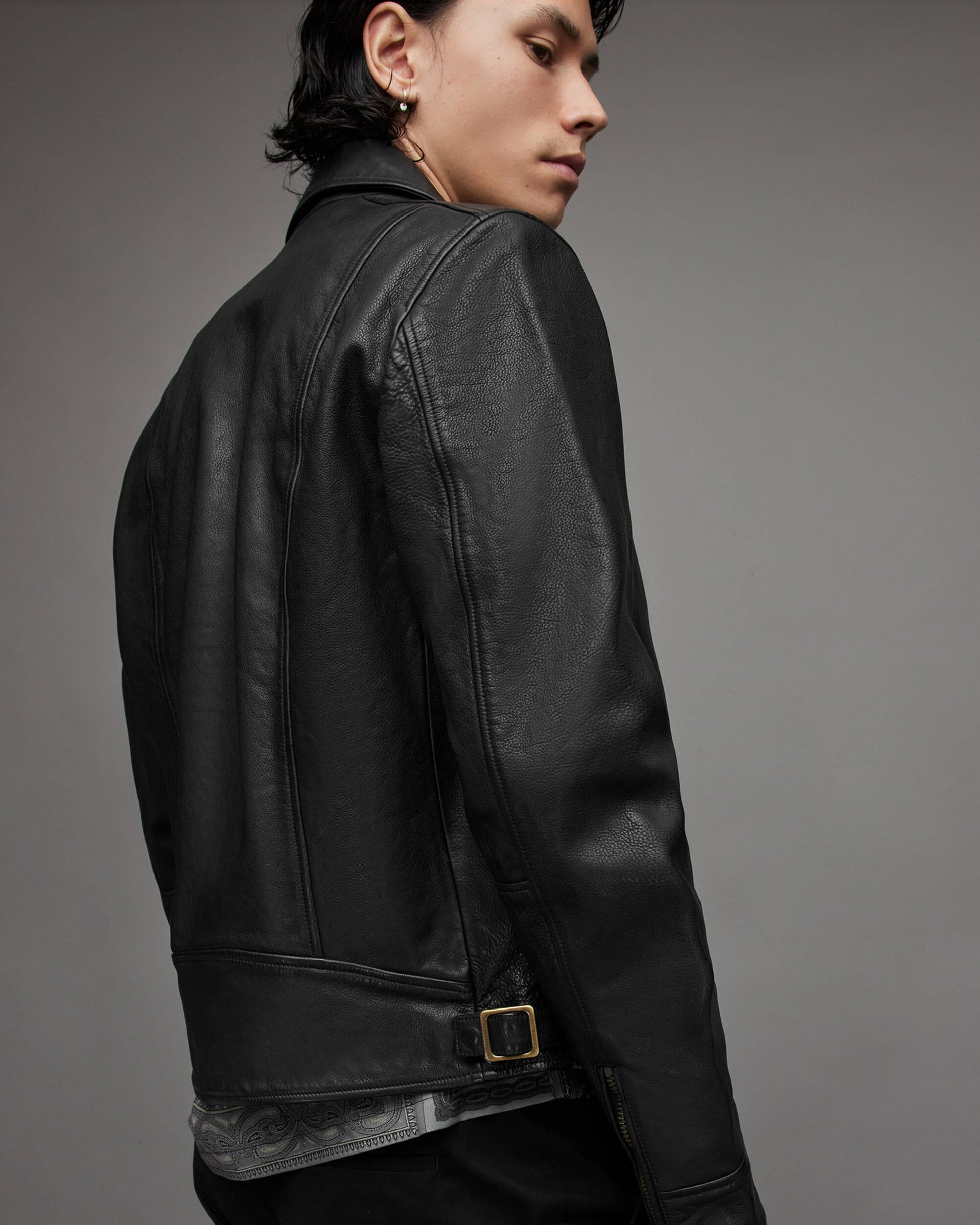 - Premium black leather material