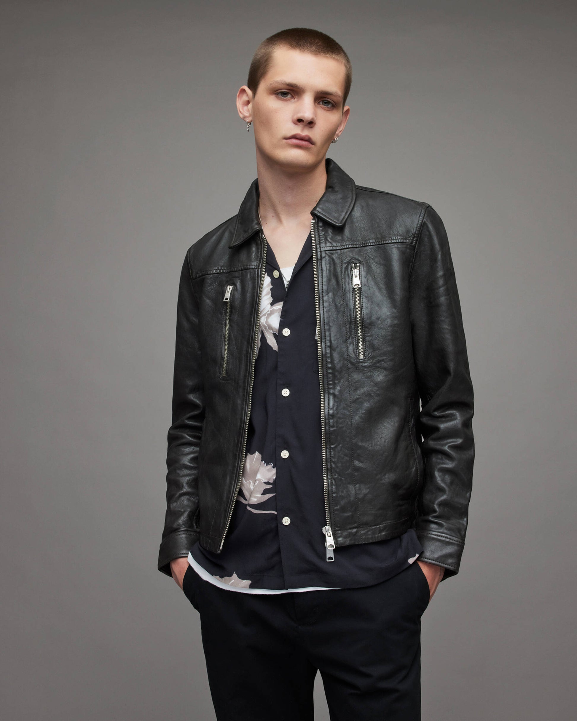 Men's Black Leather Cafe Racer Jacket