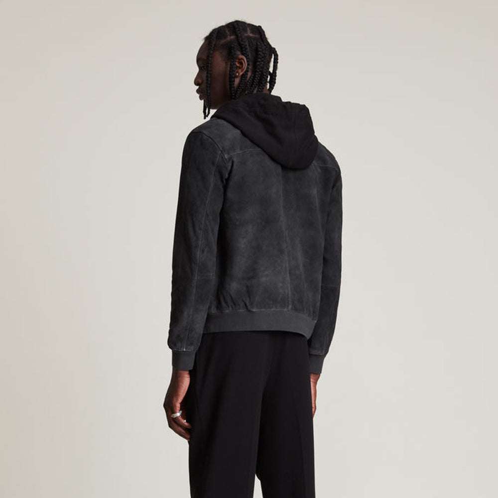 Men’s Suede Leather Hooded Bomber Jacket - Stylish & Comfortable