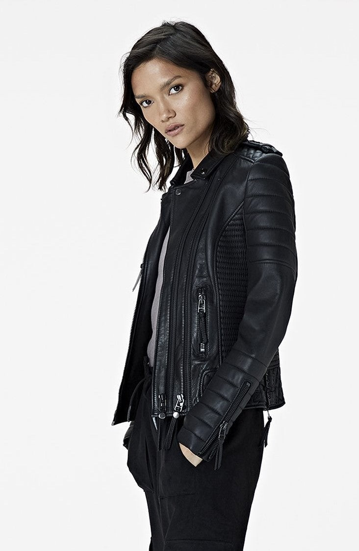 Elevate your style with the Women's Black Biker Cafe Racer Leather Jacket from Avanzar Leather. This premium jacket combines the classic biker aesthetic with the sleek design of a cafe racer, crafted from high-quality leather for ultimate durability and comfort. The tailored fit ensures a flattering silhouette, while the minimalist design adds a touch of sophistication. Perfect for both casual and formal occasions, this versatile jacket is a must-have in any wardrobe. Enjoy hassle-free shipping and easy returns, making your shopping experience seamless. Embrace timeless fashion with Avanzar Leather and stand out effortlessly.