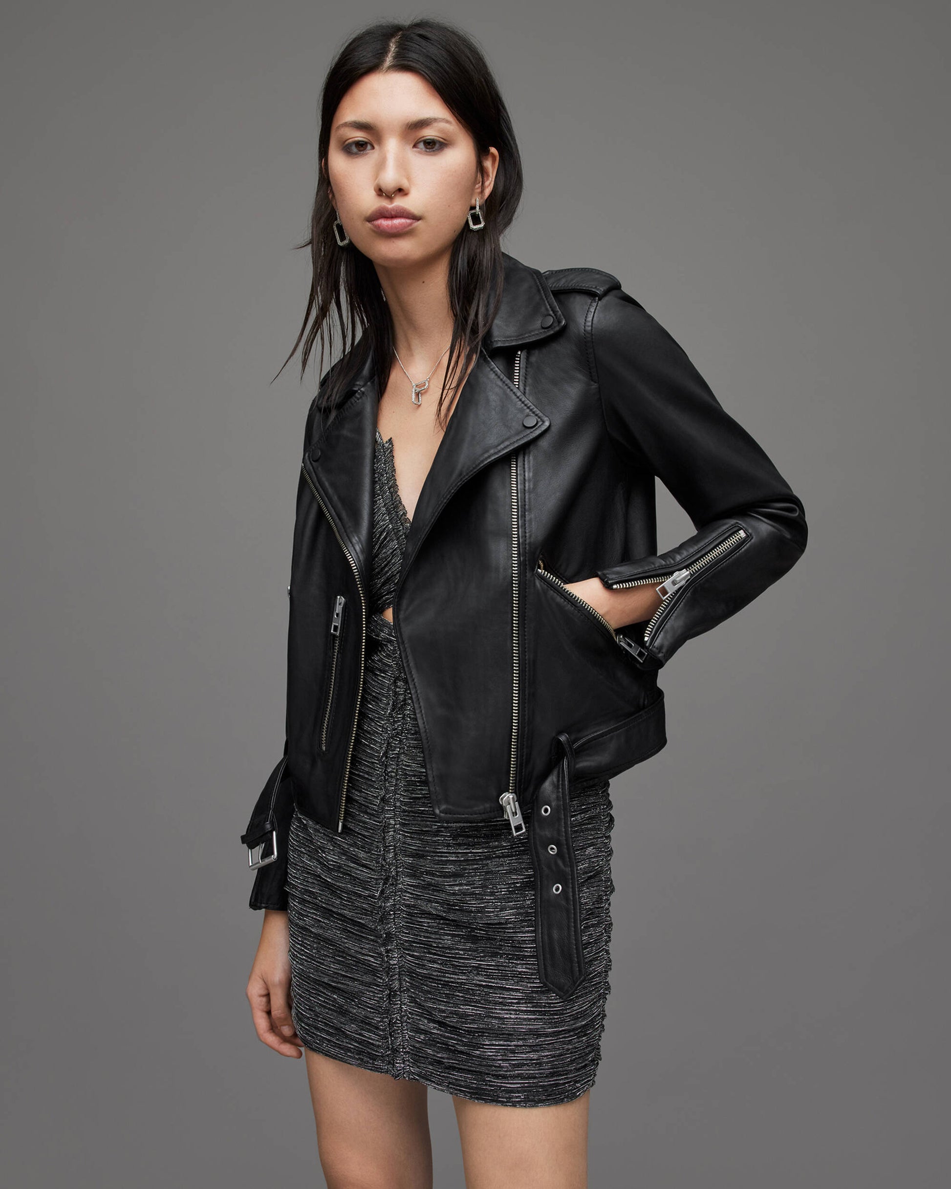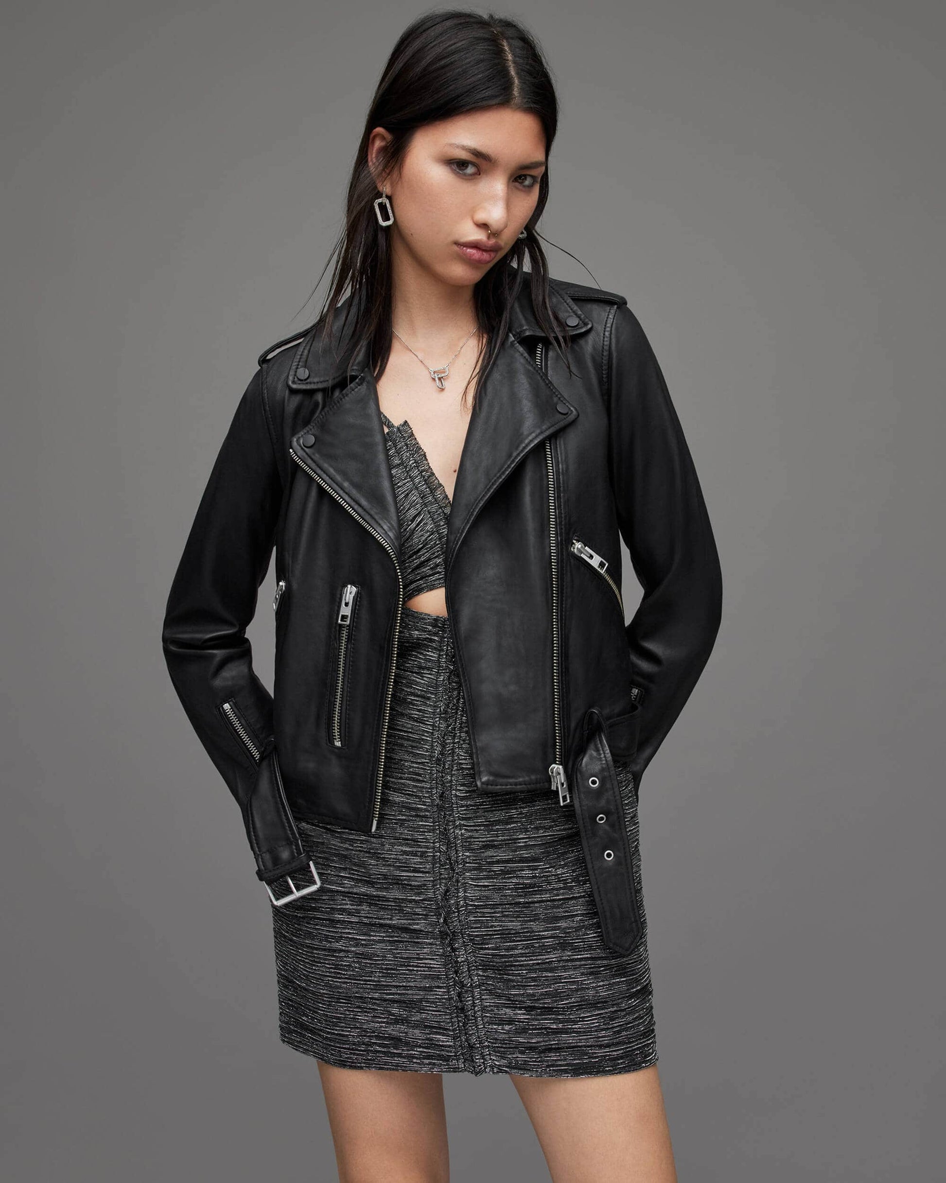 Women's Black Biker Leather Jacket with Belt