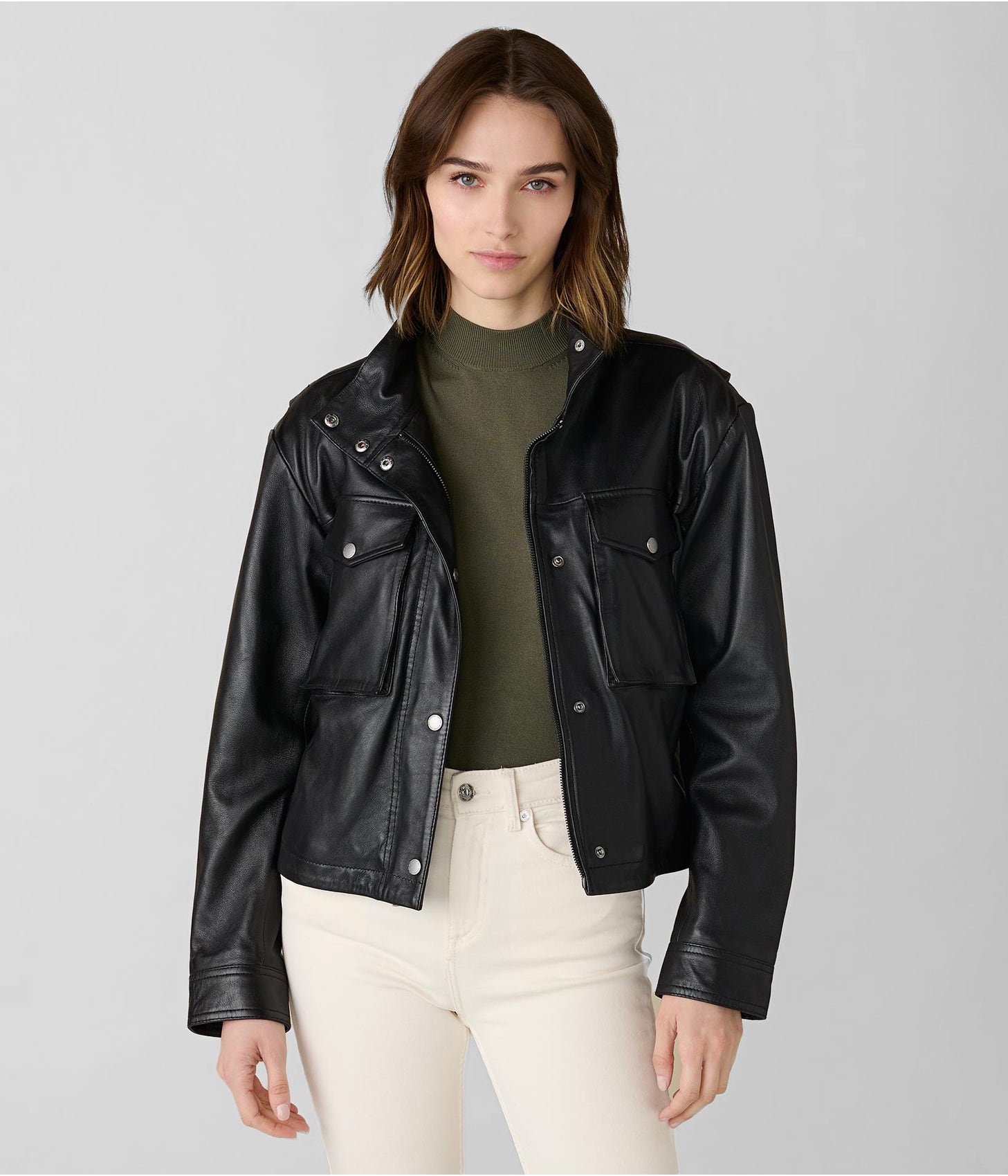 Discover timeless style with the Women's Black Harrington Leather Jacket from Avanzar Leather. This jacket, crafted from premium black leather, features the classic Harrington design, known for its clean lines and versatile appeal. The sleek black color and structured fit make it a sophisticated choice for any occasion, whether casual or semi-formal. Durable and stylish, this jacket ensures both comfort and elegance. Shop now to take advantage of our discounted price, hassle-free shipping, and exceptional customer service. Enjoy easy returns for a seamless shopping experience.