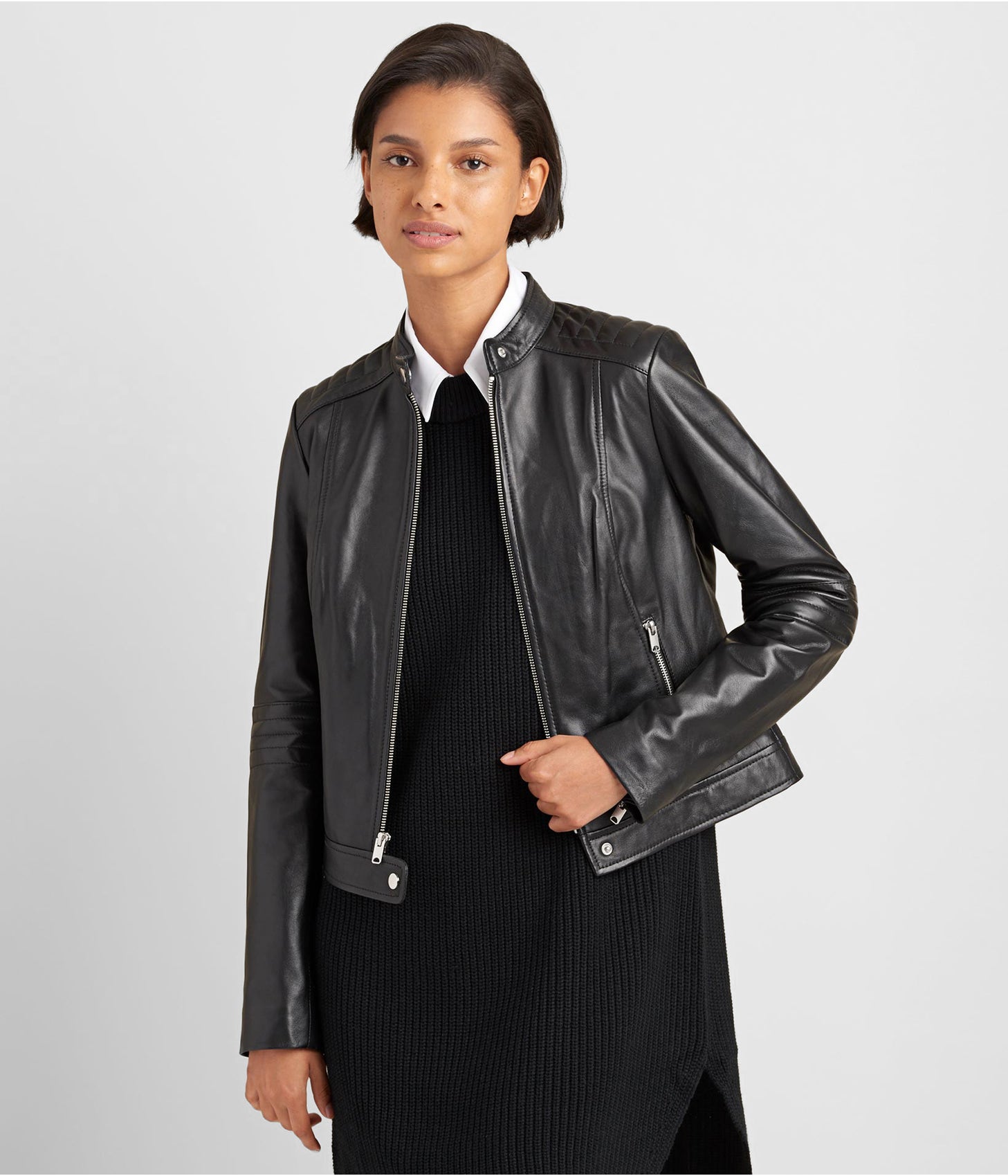 Women's Black Leather Biker Jacket