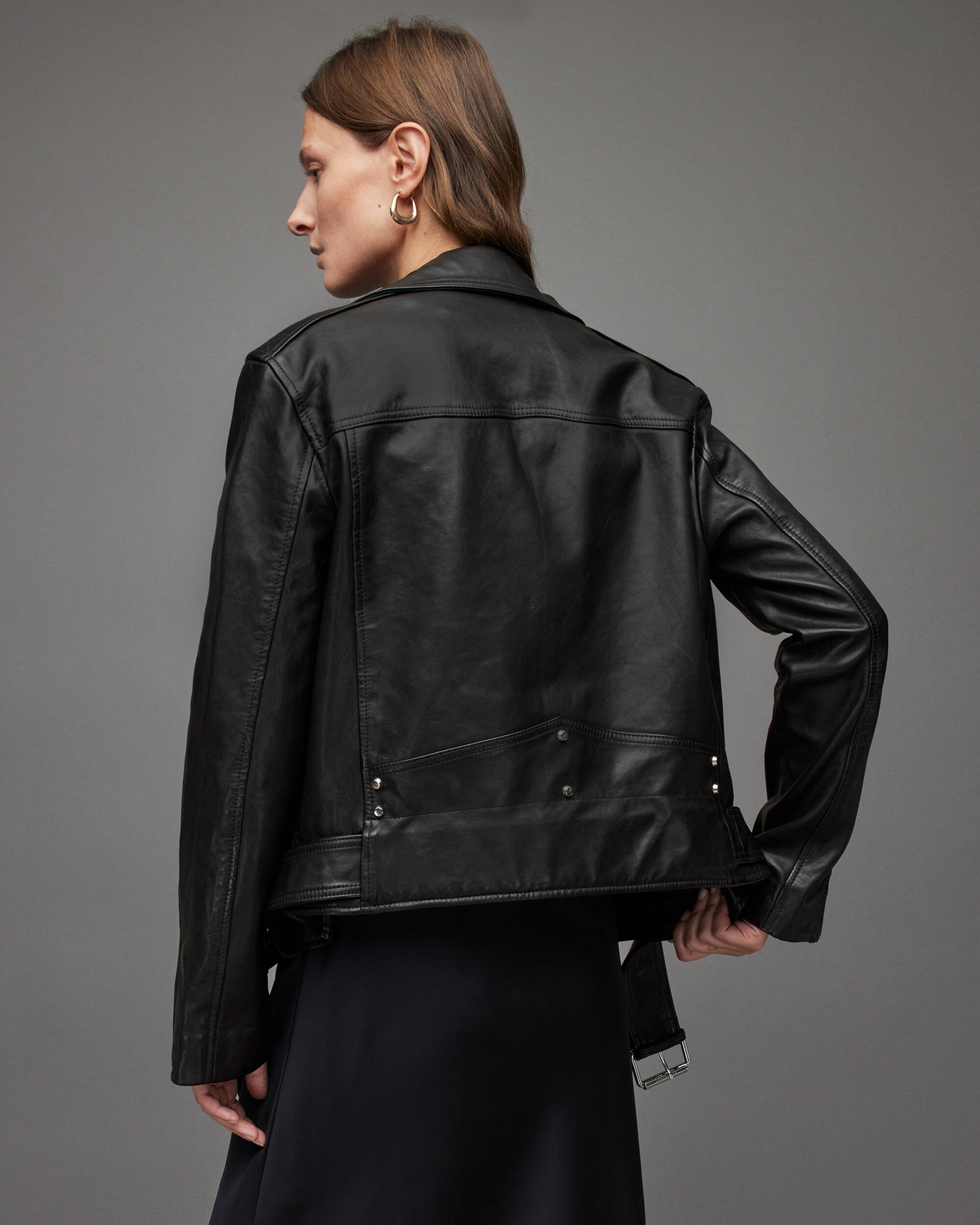 Elevate your look with the Women's Black Leather Biker Jacket with Belt. This classic biker jacket features a sleek black leather exterior combined with a stylish belt that cinches the waist for a flattering fit. The high-quality leather ensures durability, while the belt adds a touch of sophistication to the timeless biker design. Perfect for any occasion, this jacket adds both edge and elegance to your wardrobe. Shop at Avanzar Leather for discounted prices, hassle-free shipping, and easy returns. Enjoy top-of-the-line customer service with this essential black leather biker jacket.