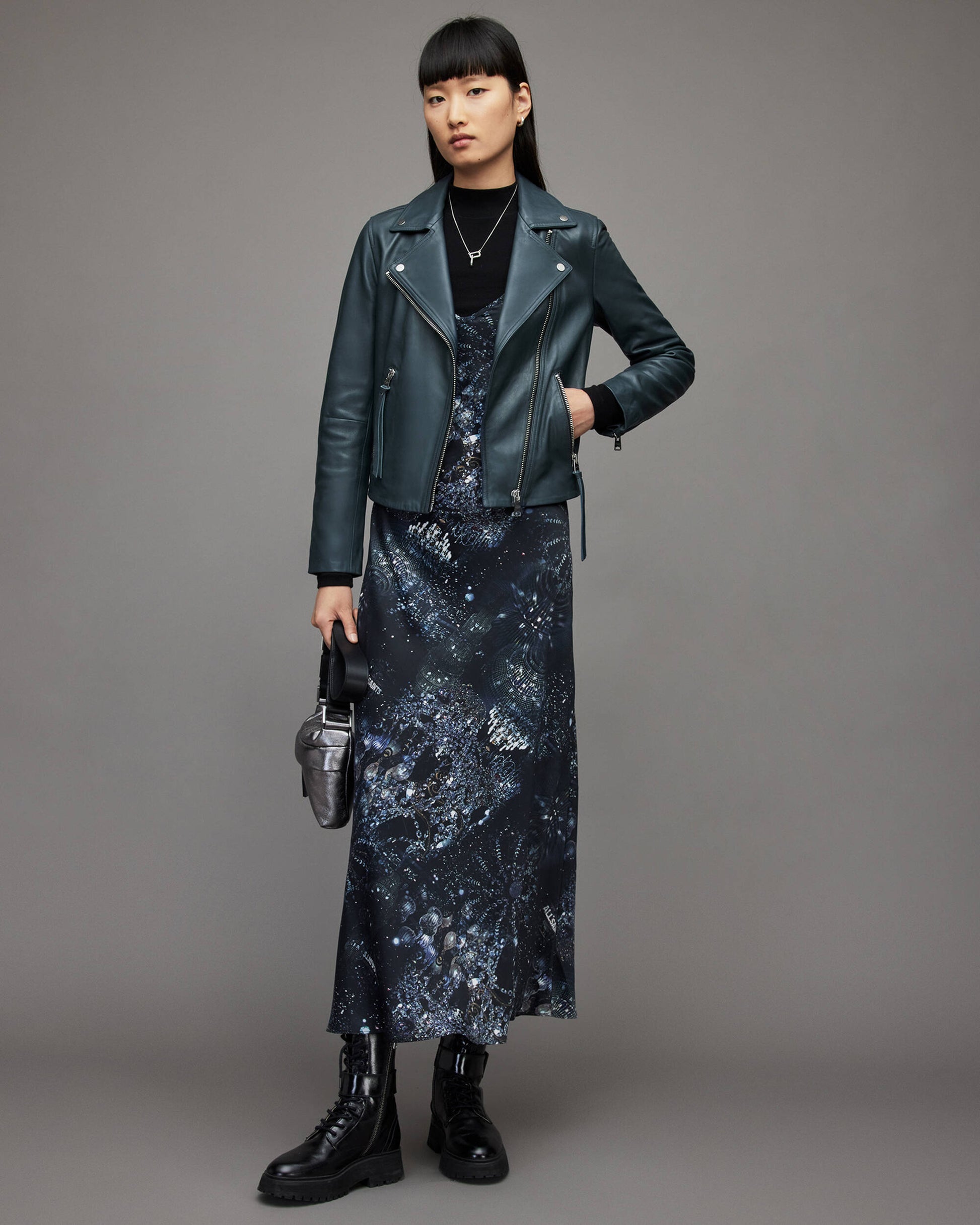 Stand out with the Women's Emerald Green Leather Biker Jacket. This vibrant jacket features a rich emerald green leather exterior that adds a bold splash of color to the classic biker design. Crafted from high-quality leather, it offers both durability and a flattering fit. The emerald green hue makes this jacket a statement piece, perfect for those looking to add a unique touch to their wardrobe. Shop at Avanzar Leather for discounted prices, hassle-free shipping, and easy returns. Enjoy top-of-the-line customer service with this striking leather biker jacket.