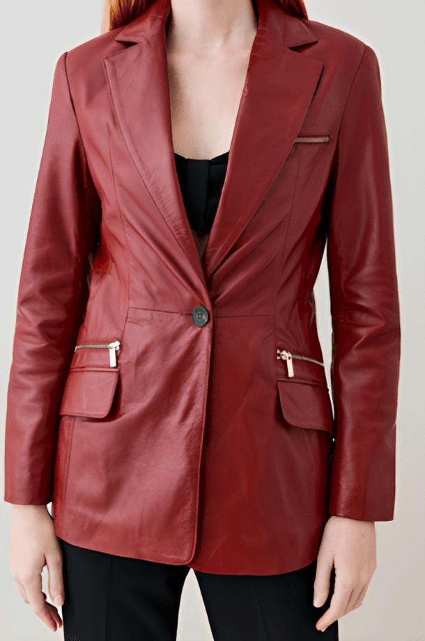 Add a touch of elegance to your wardrobe with the Women's Wine Red Leather Blazer from Avanzar Leather. This stunning blazer, made from premium wine red leather, offers a sleek and sophisticated look that is perfect for both professional and casual settings. The rich color and tailored fit ensure you stand out with confidence and style. Ideal for any occasion, this blazer combines durability with high-fashion appeal. Shop now to enjoy our discounted price, hassle-free shipping, and exceptional customer service. Easy returns make your shopping experience seamless and satisfying.