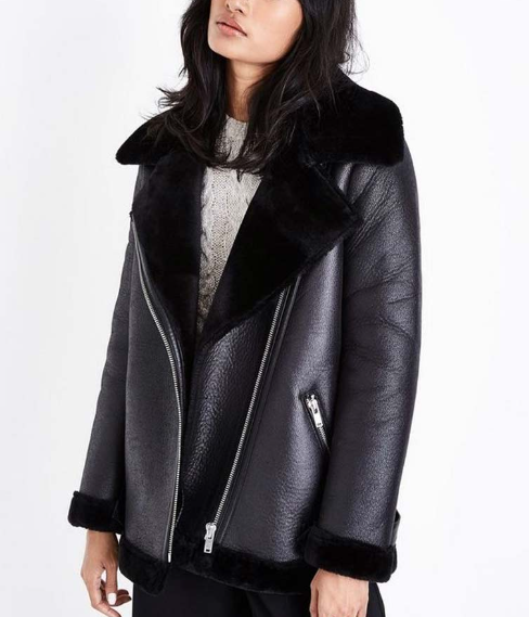 Women's Black Shearling Fur Bomber Leather Jacket