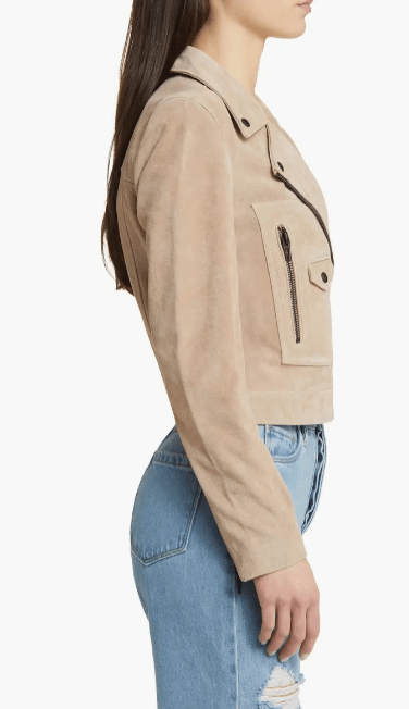 Women's Tan Beige Suede Biker Leather Jacket