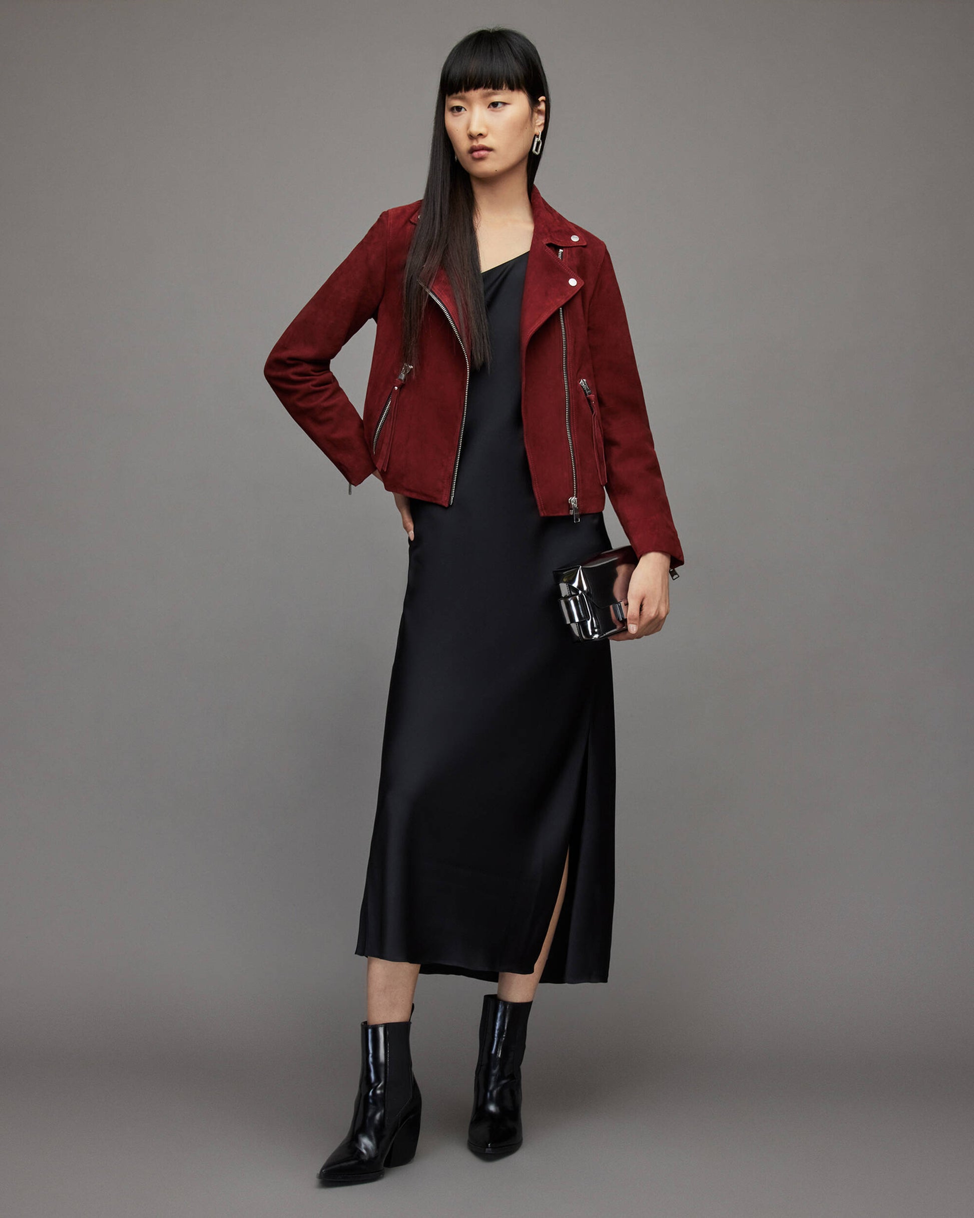 Women's Red Suede Leather Biker Jacket – Bold & Elegant
